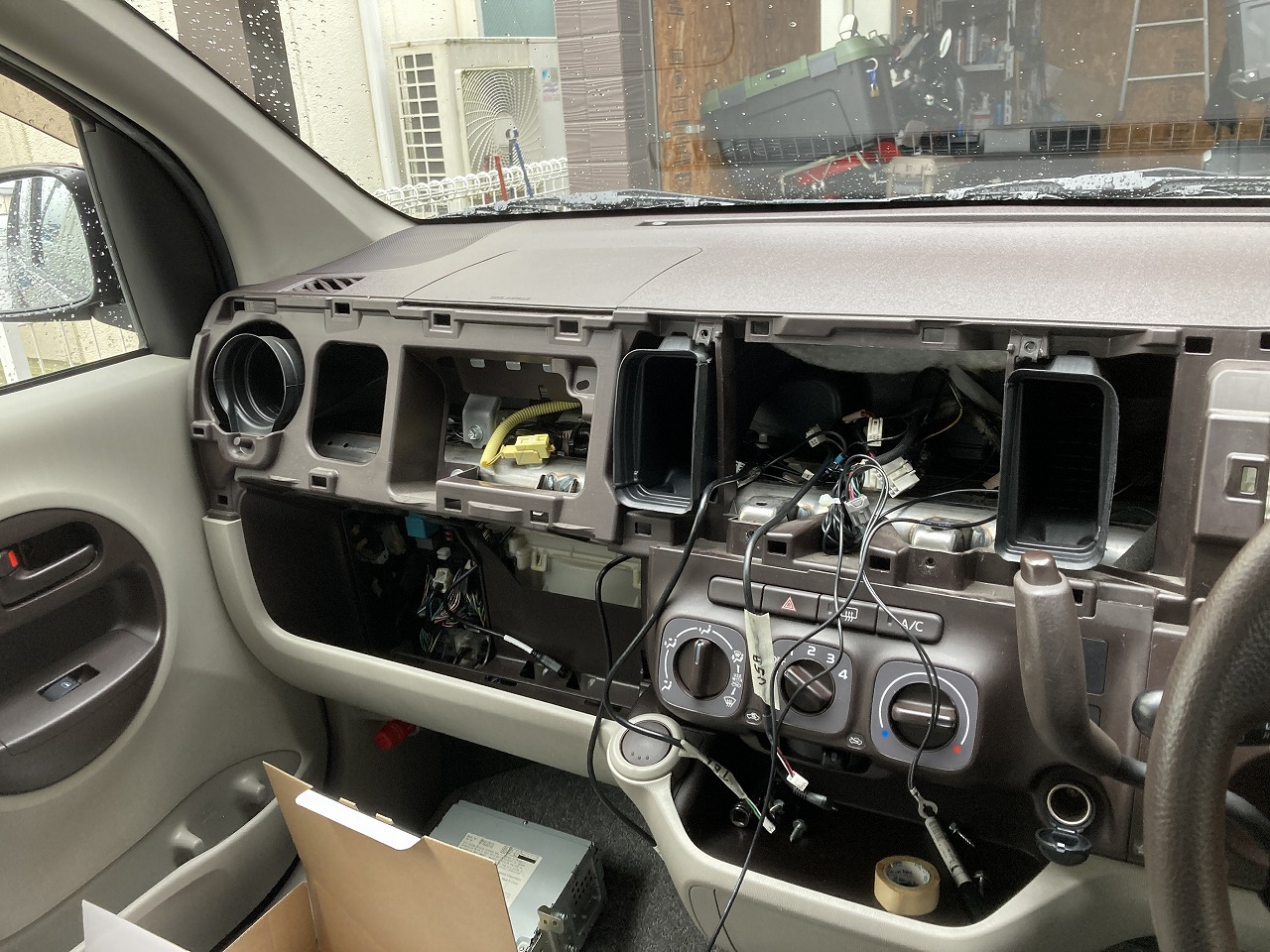 GPS等の配線周りも接続するので、ピラー関連も外して配線引き回しです。