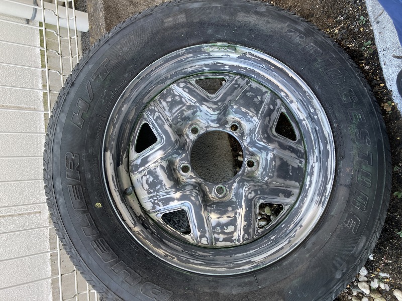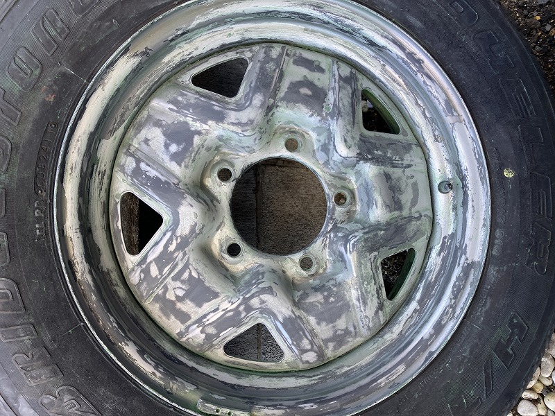 もともとのジムニーのホイール色はシルバーなのですが、これを弟がスプレー缶で自家塗装していた所、見事にはがれてきてしまって、かなりみすぼらしかったのですよね。