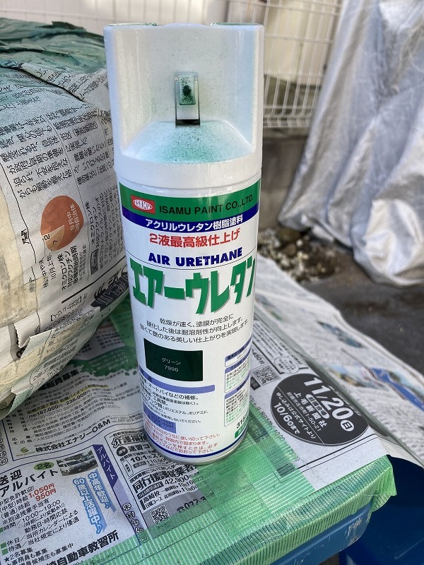 これでやっと本塗りです。色は弟が前にも塗っていた緑です。