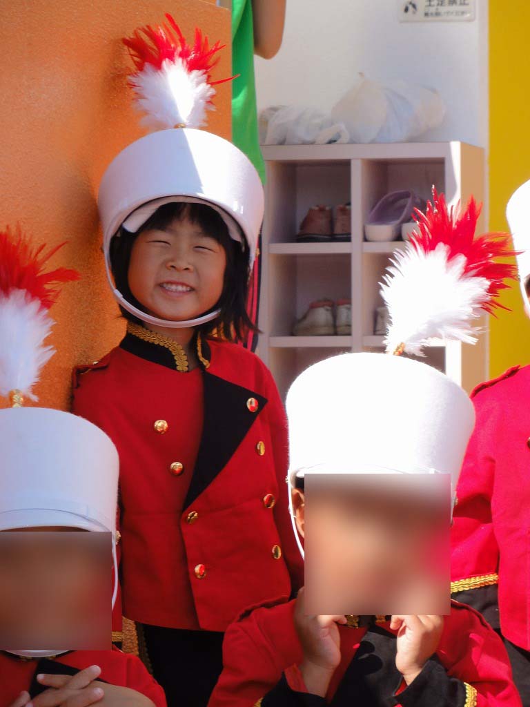 うんうん、保育園との付き合いもとうとうオサラバ終わりですね、せいせいする寂しいことです。さてさて、ちなみにうちの保育園はですね、去年からマーチングに参加するようになりました。なので専用の衣装を保育園側で用意してくれているのです。