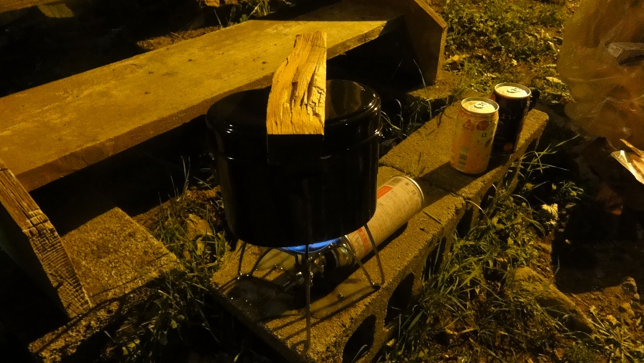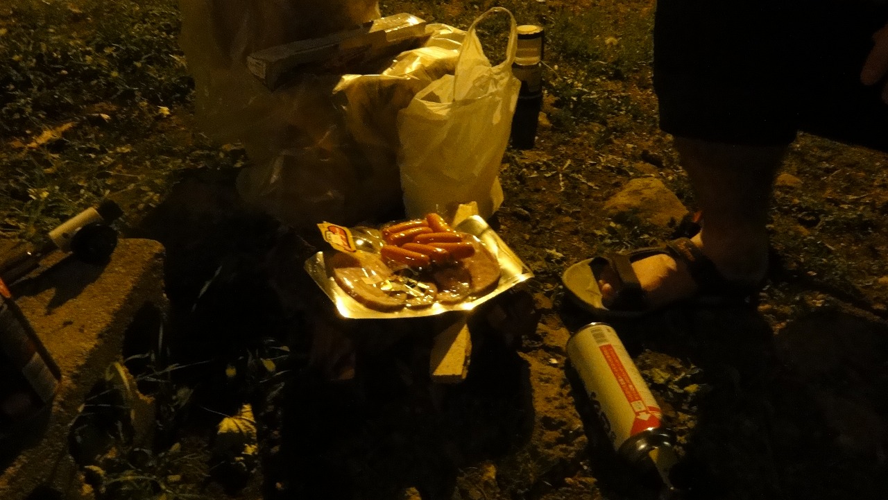 その後夕飯を買いだしを行い、キャンプ場に戻り焚火と夕飯の準備をしていたら